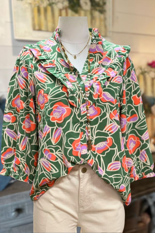 Blooming Blossoms Top-Green