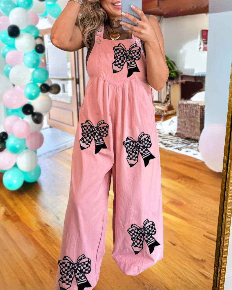 This cargo jumpsuit combines casual and playful elements, with a check pattern and shimmering sequins for a unique statement.