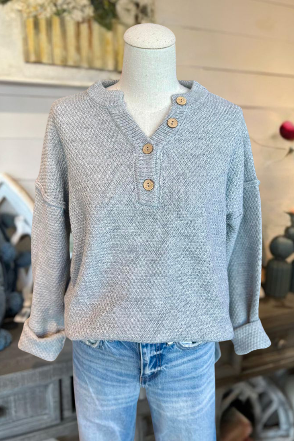 Add the perfect cozy sweater to your winter wardrobe with this button closure drop shoulder design. The oversized fit and customizable neckline will provide ultimate comfort with a stylish touch.
