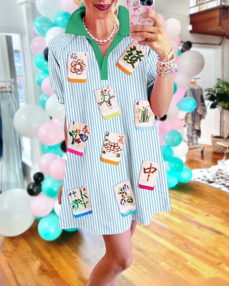 Casual Mahjong Sequin Striped Dress