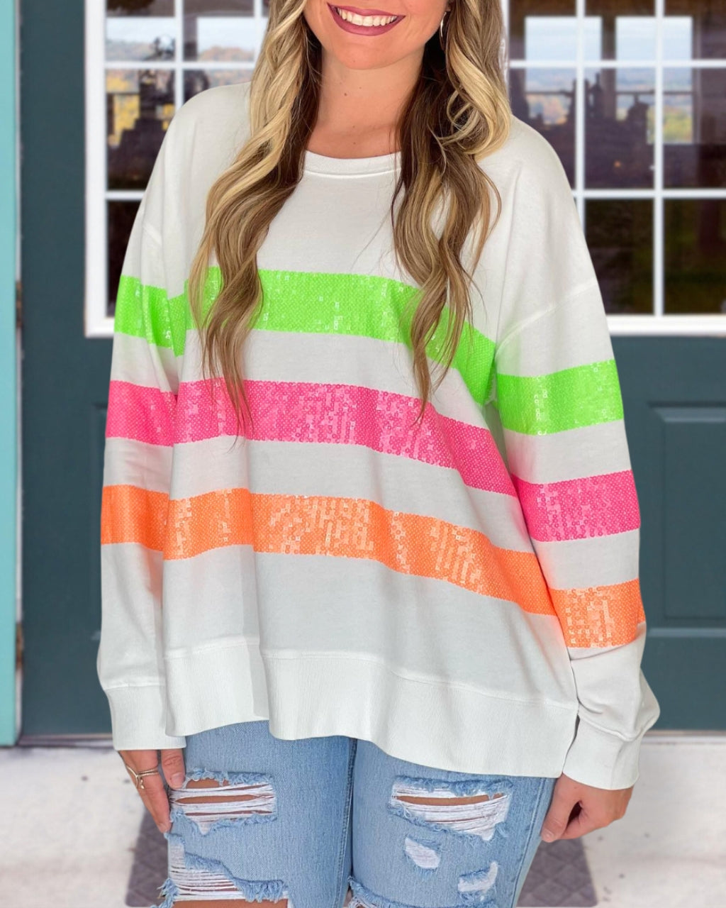 This trendy piece combines comfort and style with its vibrant sequin decorations that catch the light and turn heads.