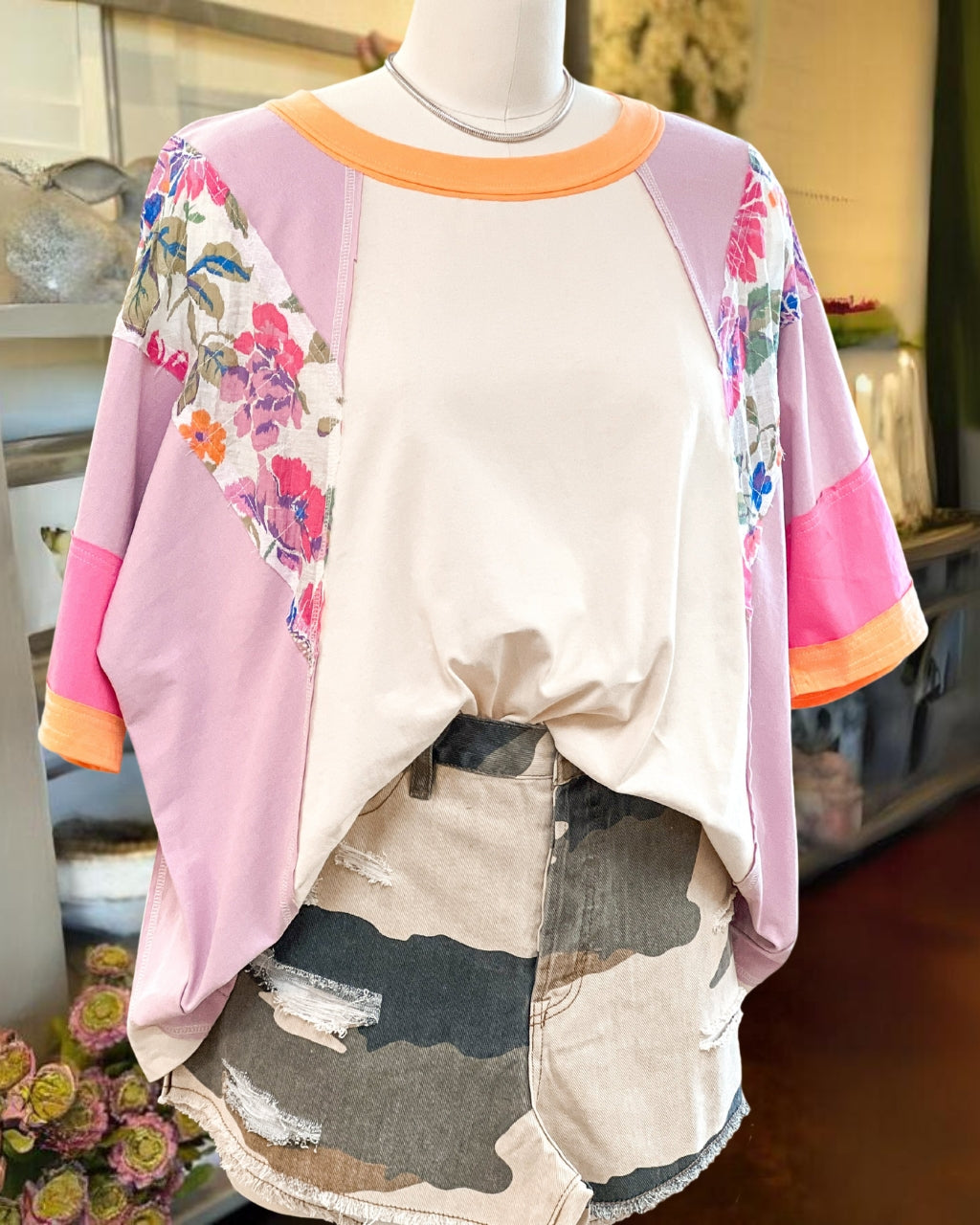 Floral Seams Color Block Oversize Tee