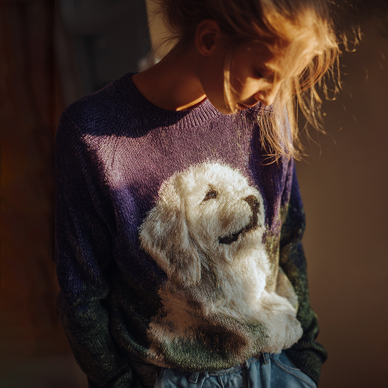 Fuzzy Golden Retriever Dog Felt Cozy Knit Sweater