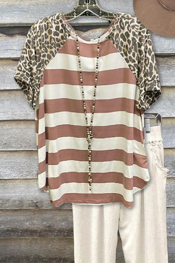 Leopard + Stripe Print Tee