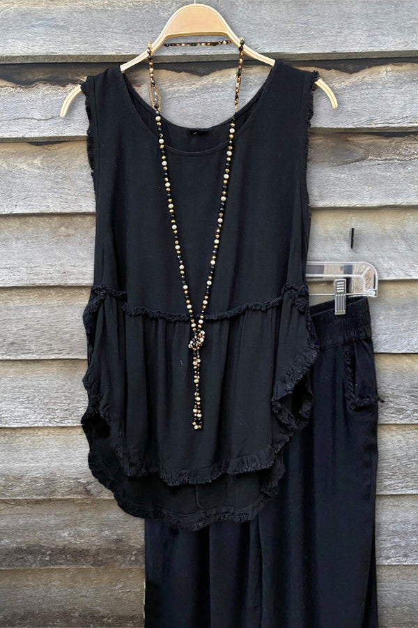 Linen Ruffle Raw Edge Tank