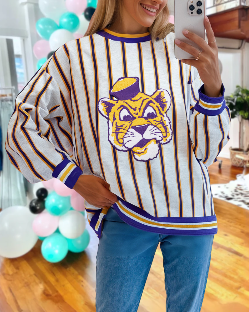 Show your wild side with the Louisiana Tigers Striped Sweatshirt! Featuring bold tiger stripes and a comfy round neckline, this playful sweatshirt brings a roar of style to your casual wardrobe.