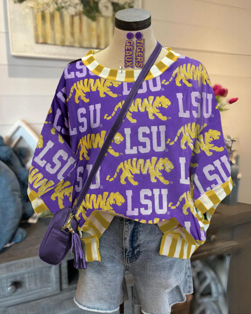 Show your team spirit with the LSU Tigers Contrast T-Shirt! Featuring bold color-blocked stripes and a comfy crew neck, this playful tee keeps you stylish whether you're cheering on the football field or hanging out with friends.