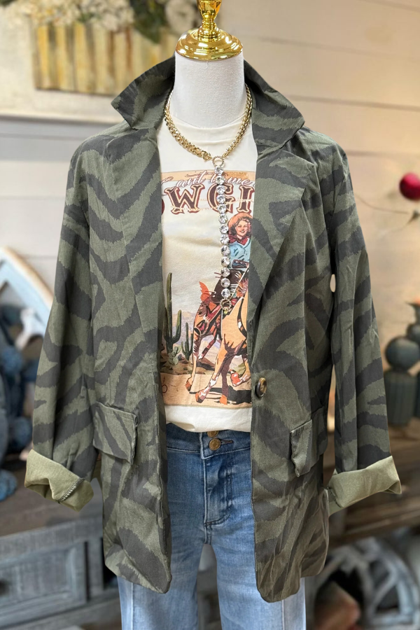 This jacket features a loose fit and retro camouflage pattern, showing a unique fashion attitude. The lapel design is classic and practical, and the pocket decoration adds practicality.