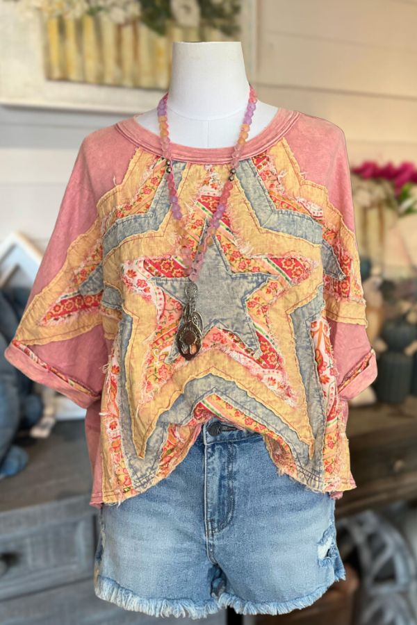 Patched Mixed Quilted Star Cotton T-Shirt