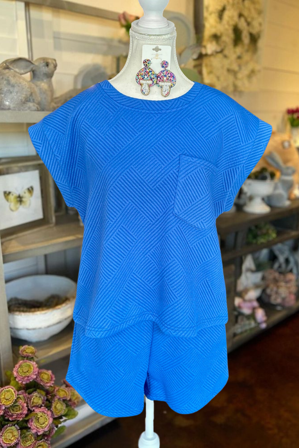 Our new Quilted Short Lounge Sets feature a premium cotton fabric with textured pattern. Loose fit top with round neck and drop-shoulder sleeves plus elastic waist shorts with two pockets provide style and comfort for lounging or casual outings. Upgrade your loungewear with our Quilted Short Lounge Sets and enjoy a perfect blend of comfort and fashion.