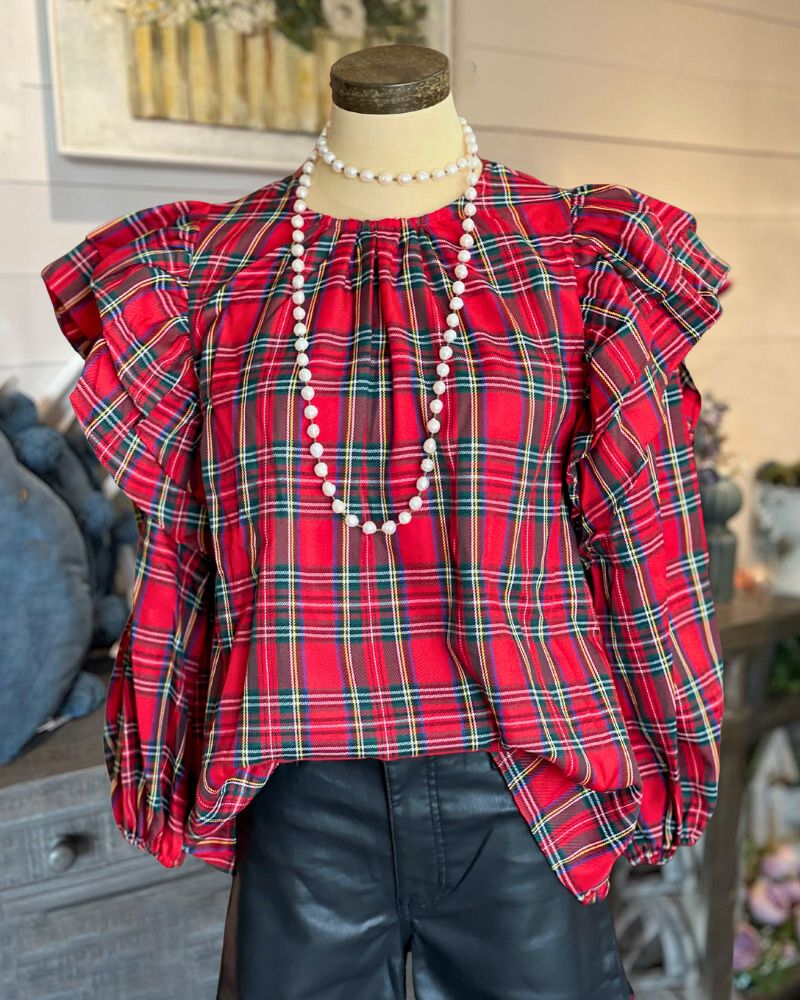 Red Colored Plaid Top