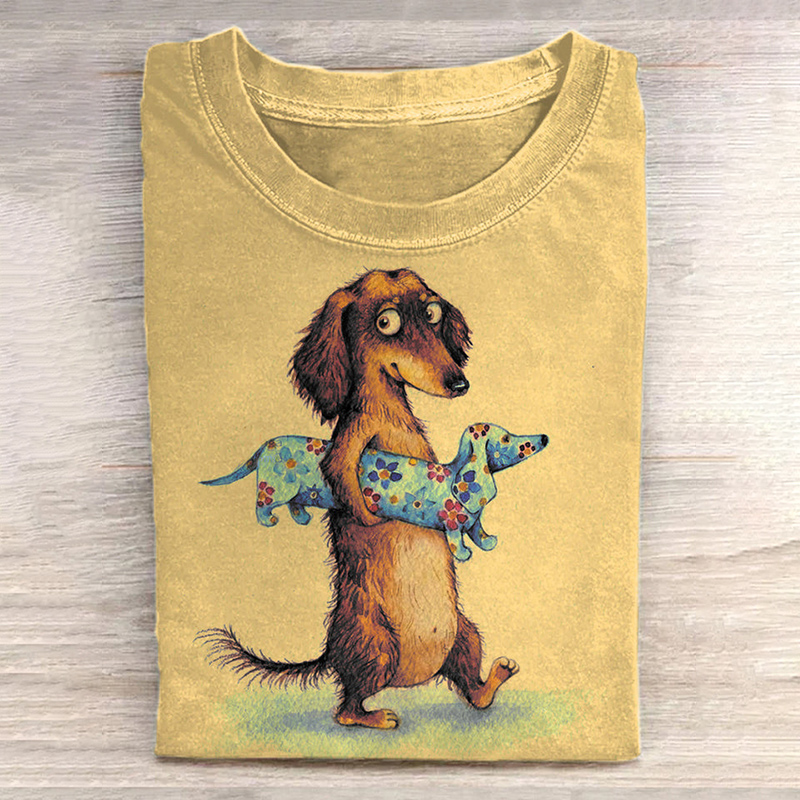Retro Funny Dog Graphic Print Casual Short-Sleeved T-Shirt