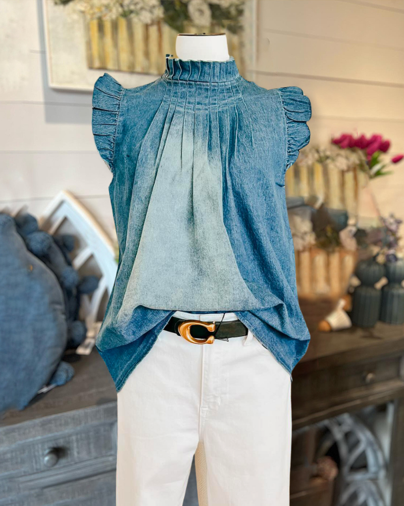 Ruffle Button Denim Top