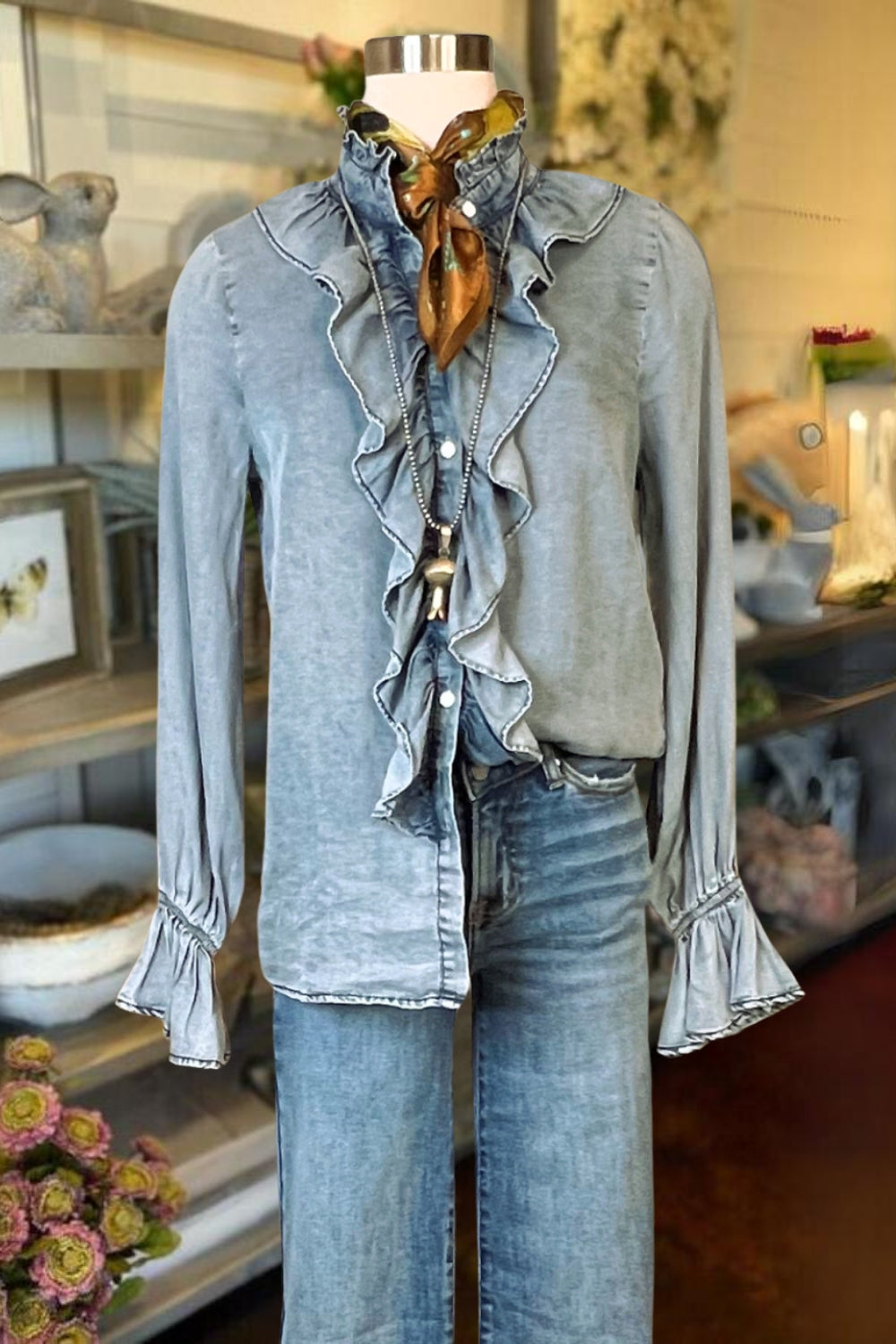 Ruffle Tencel Denim Shirt