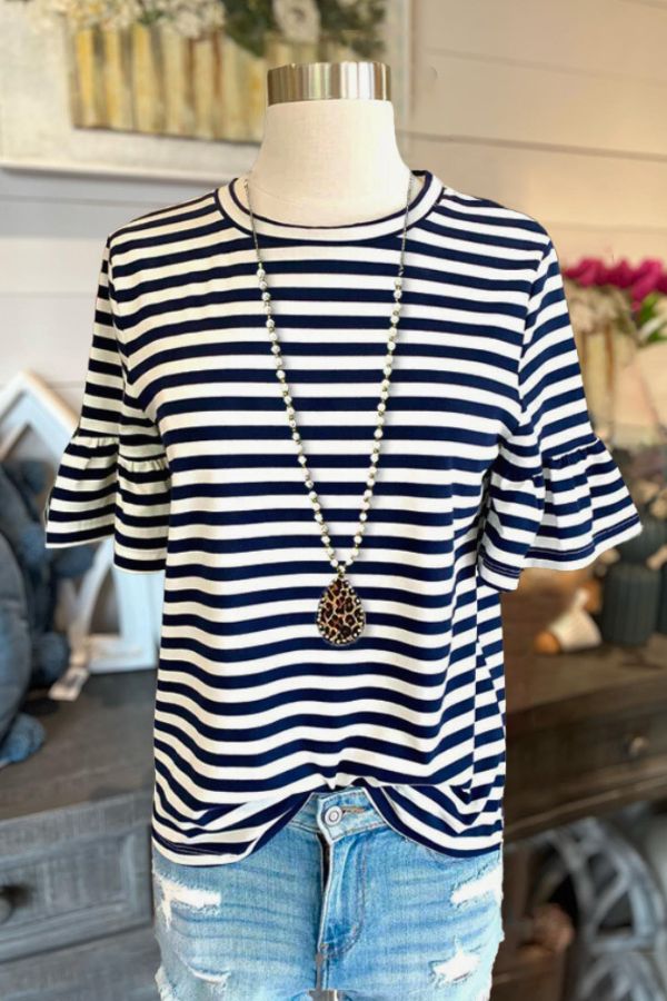 Give your wardrobe a lift with our Casual Round Neck Top. Soft cotton blend, timeless round neck & short sleeves. Features standout stripe fabric for chic style. Regular length looks great with jeans, skirts & shorts. A must-have piece you'll soon love. Effortless style awaits.