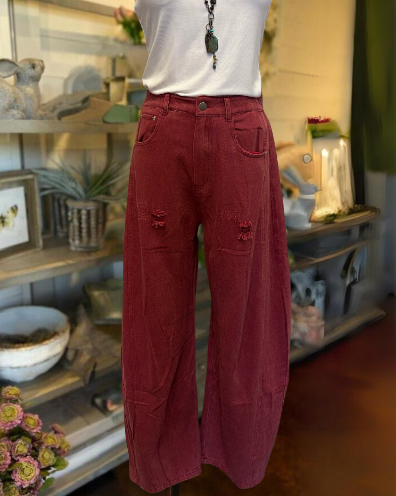 These trendy washed wide-leg pants have a unique hole design that easily shows off your personality.