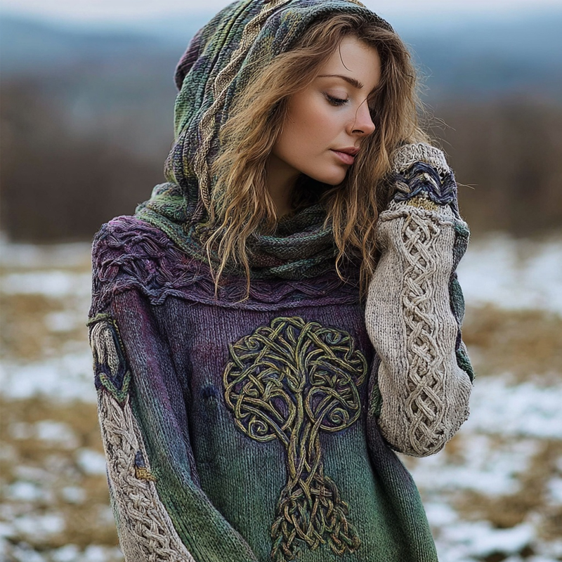 Viking Tree Of Life Embroidered Gradient Hooded Sweater