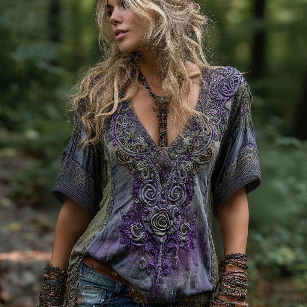 Vintage Rose Celtic Knot Embroidery Art Linen Blend Shirt