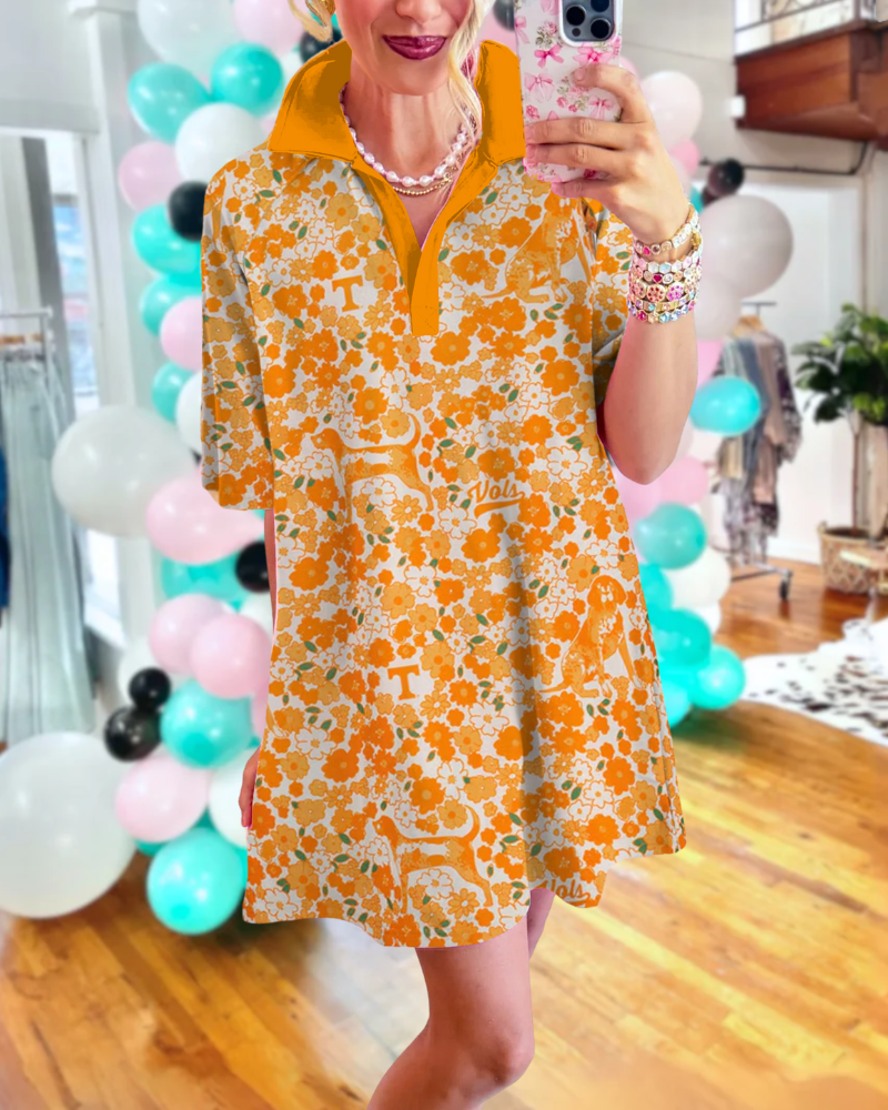 Step into a garden of charm with the Vols Floral Satin Mini Dress. Its smooth satin fabric and delicate floral print bring a touch of whimsy, while the half-open V neckline adds a flirty twist.