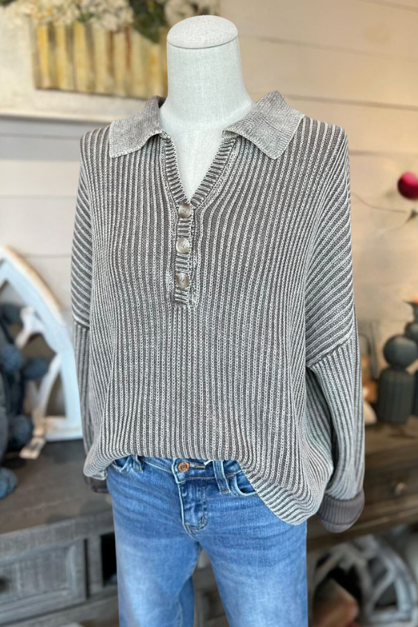 The wash gives the sweater a vintage yet soft feel, while the ribbing and versatile fit make it the perfect addition to any wardrobe.