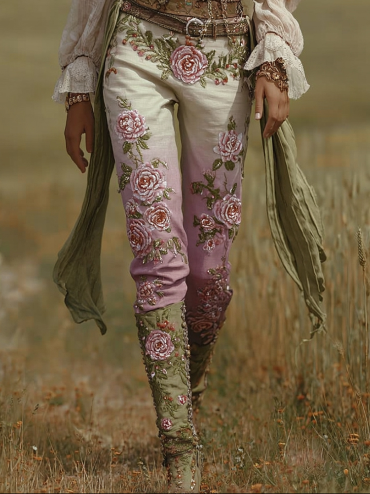 Women's Embroidered Casual Vintage Pants