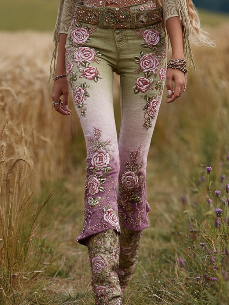 Women's Tie-dye Printed Rose Casual Vintage Pants